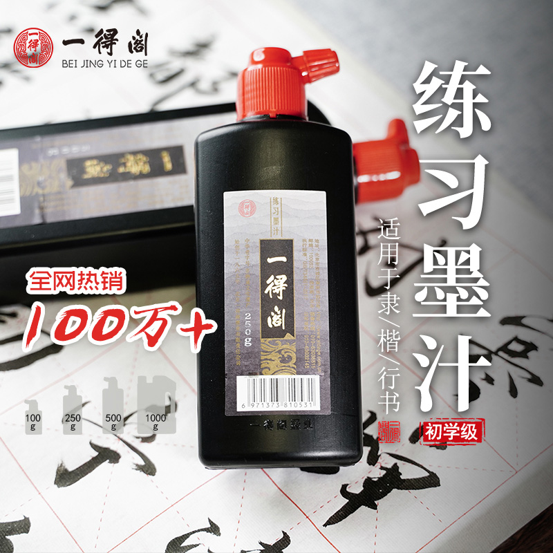 一得阁练习墨汁100/250/500/1000g毛笔墨水学生书法专用墨汁毛笔国画颜料大瓶装笔墨纸砚文房四宝官方旗舰店