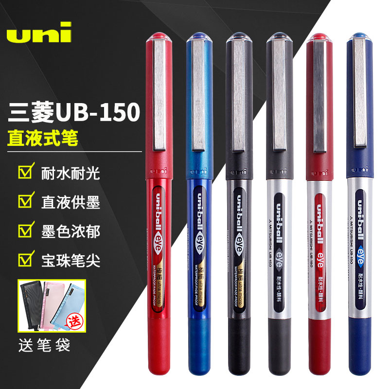 日本uniball三菱UB-150中性笔直液式走珠笔0.5mm水性签字笔0.38黑色水笔ub150学生用刷题黑笔碳素笔进口文具