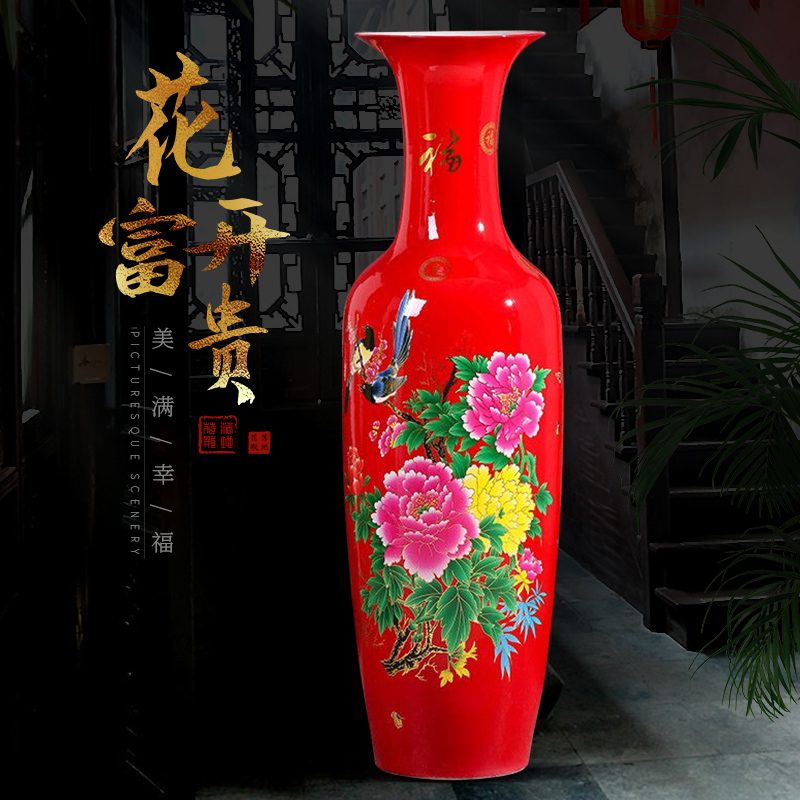 景德镇陶瓷器红色落地大花瓶中式客厅办公室公司开业乔迁送礼摆件