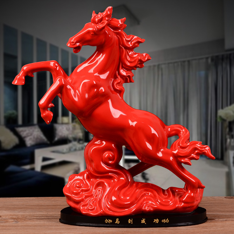 大号红色陶瓷马摆件十二生肖家居风水客厅摆设招财瓷器工艺品礼品