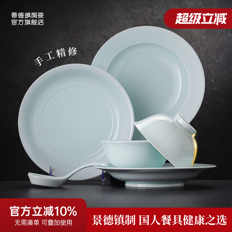 景德镇官方陶瓷家用餐具套装轻奢吃饭碗碟餐盘子乔迁送礼新婚瓷器