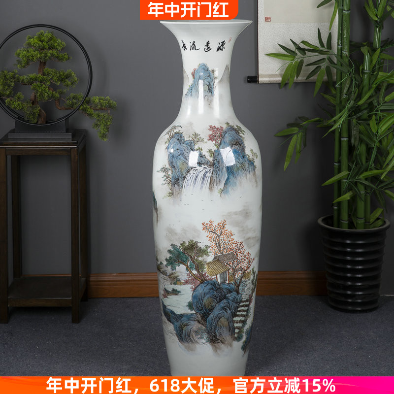 景德镇陶瓷器手绘山水落地大花瓶新中式客厅酒店公司开业别墅摆件