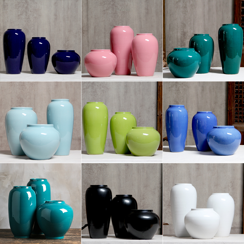 景德镇陶瓷器花瓶现代简约台面玄关家居客厅插花摆件陶罐翡翠绿