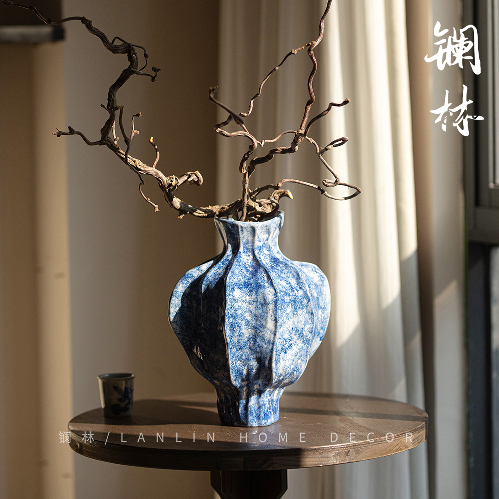 高档冰晶釉花瓶花器摆件新中式客厅博古架瓷器高级感艺术装饰花插