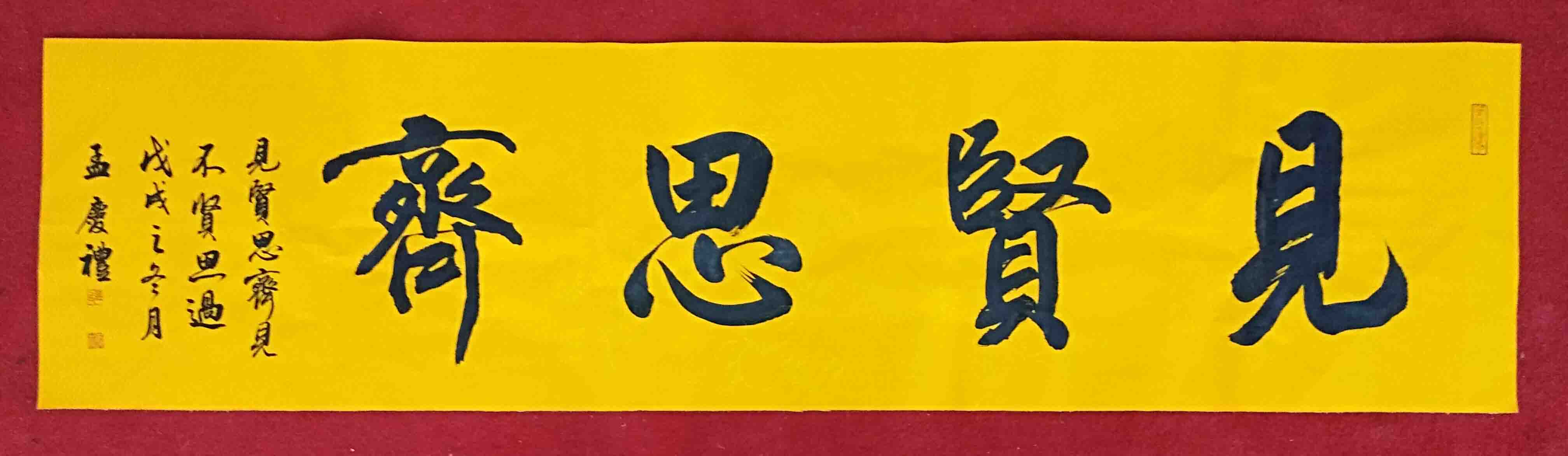 孟庆礼,字翰章,别署承儒堂主人。1966年生于孟子故里邹城市。系亚圣孟子第七十三代孙。现为中国书法艺术家协会会员,中国硬笔书法协会会员,孟子书画研究院常务理事,中国书画网络电视台签约书法家,北京仁和书法院院士,河南省黄庭坚书法研习院名誉院长。
