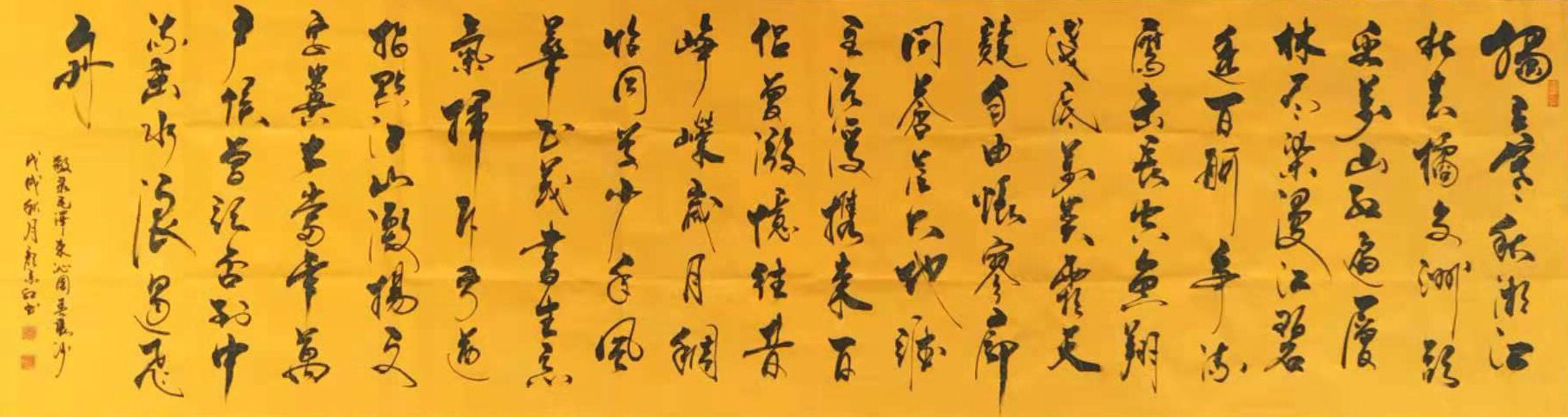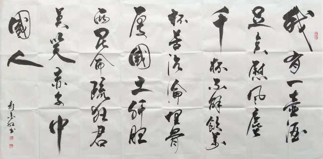 自幼天资聪颖,勤奋好学,痴于书法、篆刻。早年从柳体入手,笔耕不辍。后博涉诸家,深追二王法脉,兼容北碑,吸收诸家之长,熔于一炉,自成面貌,所书既有欧柳法度之严谨、端庄,又兼魏晋之风神,雄秀兼备。使其作品既有形质的端庄遒劲,又富有性情的灵动和深刻的内蕴。四体皆能,善精行草。书法苍劲有力,雄浑大气,可以看出他不俗的书法功底。