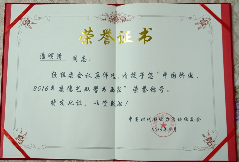 潘明清,男,汉族,毛体书法艺术家,山东泰安肥城人,1950年生人,大专文化,国家一级美术师,现居北京。