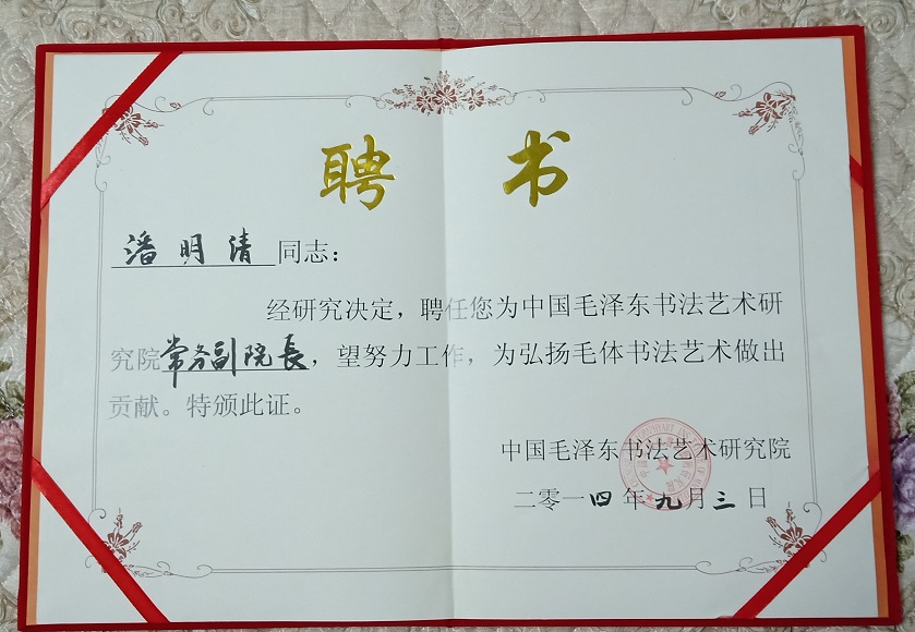 中国毛泽东书法艺术研究院长务副院长中国毛体书法艺术家协会顾问中国楹联学会艺术委员中国美术艺术家协会副主席国务院国宾礼特供艺术家中国梦文化万里行组委会顾问中国书画院常务理事