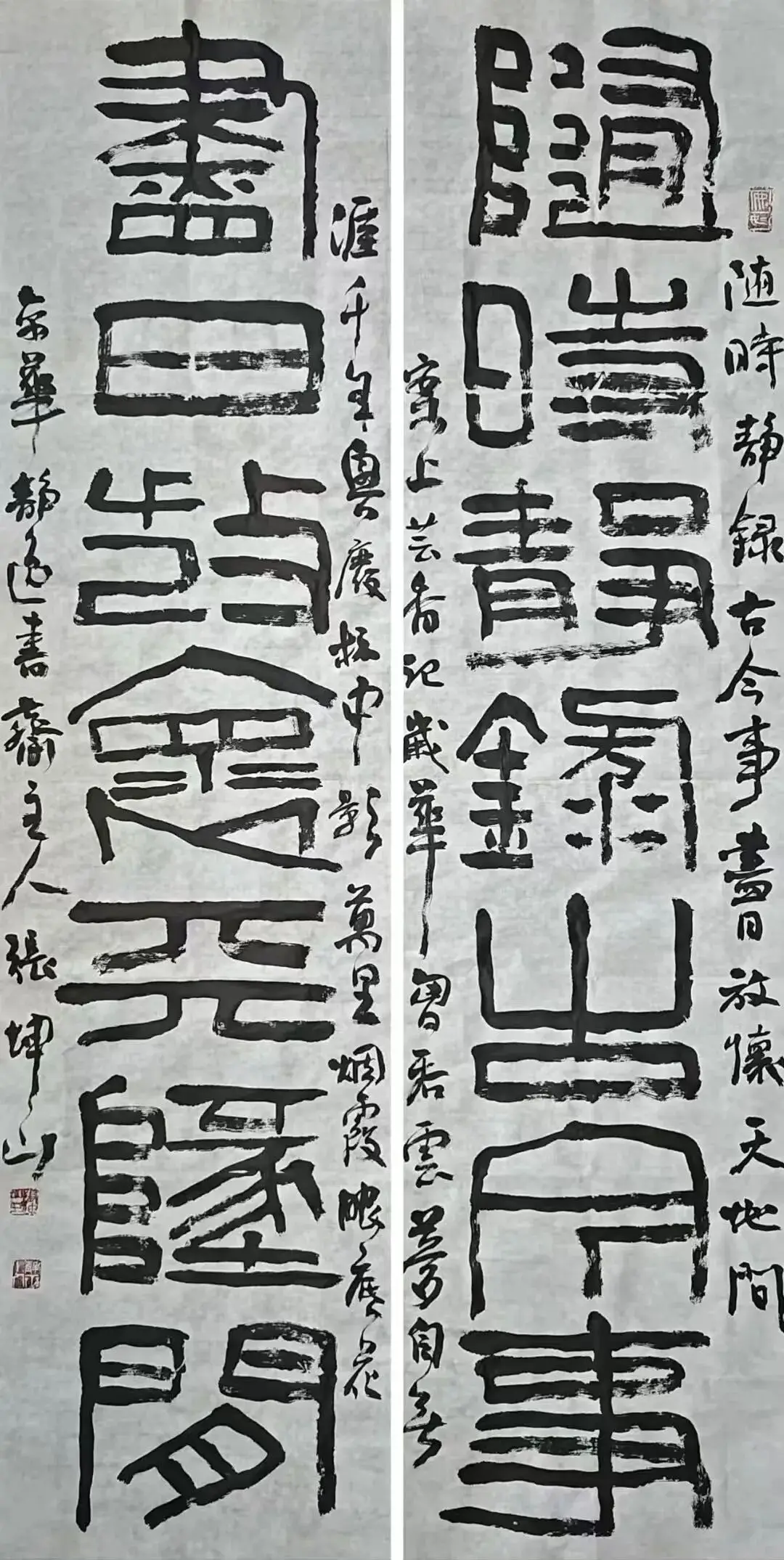 张坤山 1952年生,山东省淄博市人,海军政治部国家一级美术师。1990年至2021年连任第三、四、五、六、七届中国书法家协会理事,长达30余年。系中国书协第六届、第七届专业委员会副主任,中国文化艺术发展促进会书法篆刻院研究员,荣宝斋书法院研究员,中国楹联学会常务理事,解放军美术书法研究院艺委会委员,海军美术书法研究院副院长,北京国都墨韵书画院院长,中央文史馆书法大家班成员,国家文旅部艺术基金评审专家,享受国务院特殊贡献津贴专家。